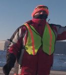 And waving. And pointing me to another volunteer equally protecting every bit of bare skin from the unforgivably cold temperatures and minus thirty-something wind chills.
