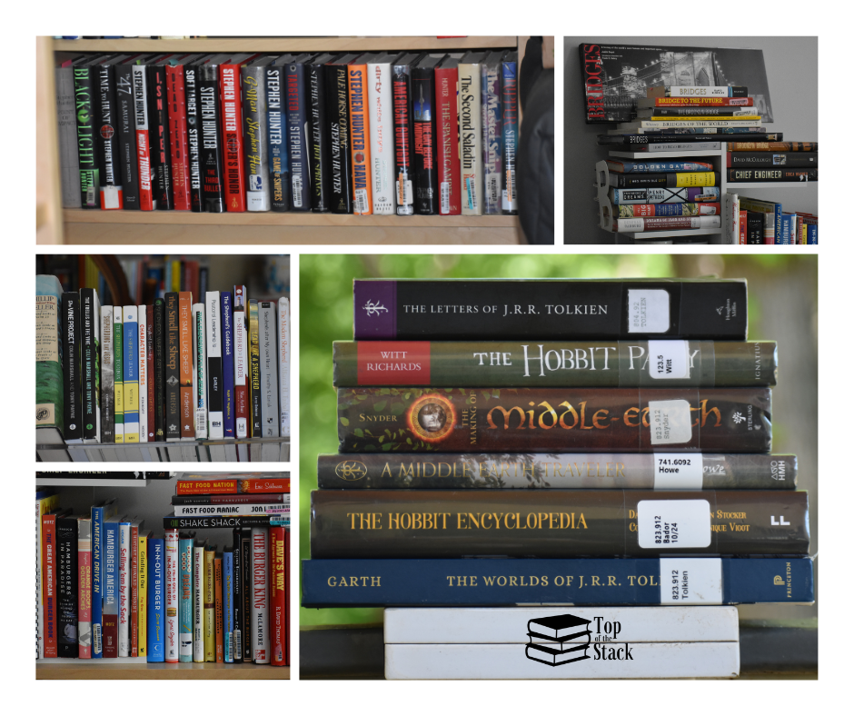 An example would be last week’s library visit, when I picked up seven books about J.R.R. Tolkien’s works about Middle-earth. As depicted in the image below, they are this week’s “Top of the Stack” which I am reading through at the moment. Most likely, all of these books will eventually be acquired and become part of my Tolkien library.