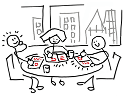 I can’t draw, but… Yellow Pen people (or highlighters) are often very good at identifying the most important or interesting aspects of what someone else has drawn. These are the people who are happy to watch someone else working at the whiteboard – and after a few minutes will begin to make insightful comments – but who need to be gently prodded to stand and approach the board in order to add to it. Once at the board and with pen tentatively in hand, they always begin by saying “I can’t draw, but…” and then proceed to create conceptual masterworks. These people tend to be more verbal, usually incorporate more words and labels into their sketches, and are more likely to make comparisons to ideas that require supporting verbal descriptions.